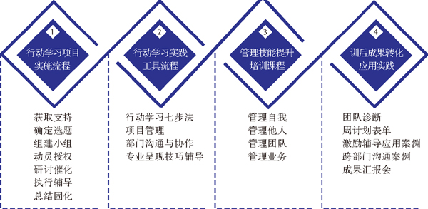 2006 年,石藥集團(tuán)根據(jù)中高層管理人員領(lǐng)導(dǎo)力評(píng)價(jià)結(jié)果,引入了行動(dòng)學(xué)習(xí)對(duì)高管人員進(jìn)行了領(lǐng)導(dǎo)力培養(yǎng)。行動(dòng)學(xué)習(xí)項(xiàng)目按照兩大方面、四個(gè)流程展開(kāi):