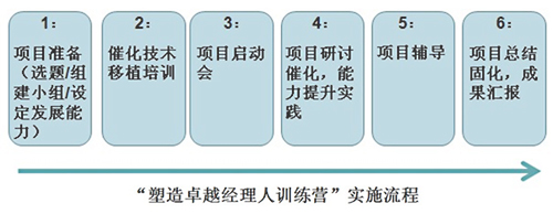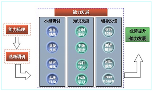 基于關(guān)鍵能力梳理和選題調(diào)研,項(xiàng)目總體設(shè)計(jì)以團(tuán)隊(duì)拓展、測評改進(jìn)、行動(dòng)學(xué)習(xí)、高端閱讀和跨界學(xué)習(xí)等五大方式通過小組研討、知識(shí)技能和輔導(dǎo)反饋持續(xù)推進(jìn)績效提升和能力改善: