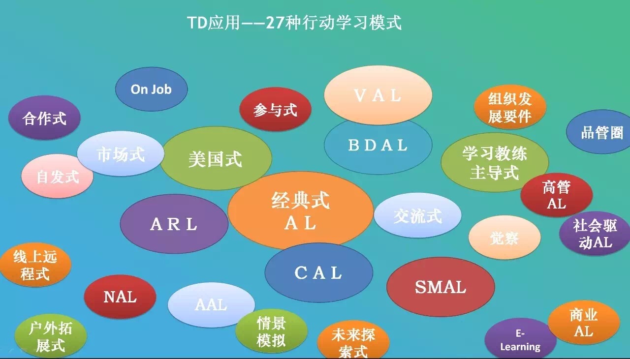 由于虛擬技術(shù)、會(huì)議技術(shù)和學(xué)習(xí)技術(shù)的發(fā)展,行動(dòng)學(xué)習(xí)也有很多技術(shù)上的變形和發(fā)展,此次論壇分享了27種模型,其中我們總結(jié)的色塊比較大的是比較主流的模式與流派,27種當(dāng)中是不是所有的模式都屬于行動(dòng)學(xué)習(xí),也需要我們思考。