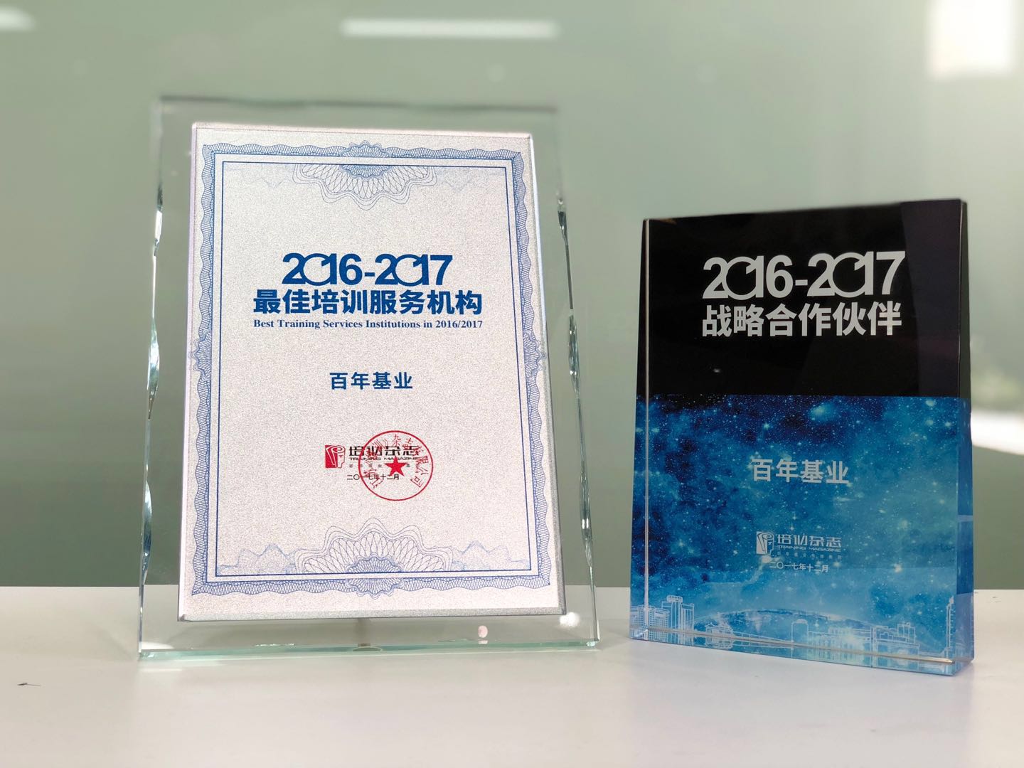 | 報(bào)喜啦!近日,百年基業(yè)在《培訓(xùn)》雜志主辦的“紅皮書盛典暨2016-2017培訓(xùn)服務(wù)機(jī)構(gòu)頒獎(jiǎng)典禮”上斬獲“2016-2017最佳培訓(xùn)服務(wù)機(jī)構(gòu)”行業(yè)大獎(jiǎng)! |