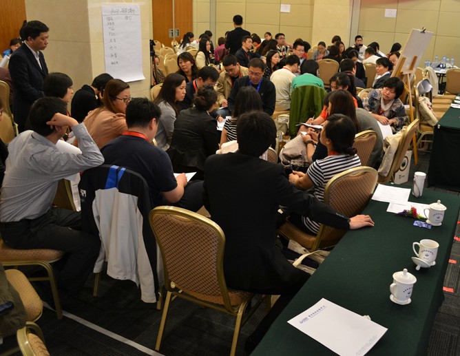 本次論壇最大亮點是安排了與會嘉賓的行動學習實戰(zhàn)體驗。在國際行動學習協(xié)會(WIAL)認證催化師、百年基業(yè)行動學習中心總監(jiān)郝君帥先生主持下,特邀部分參會嘉賓分為6個體驗組,每組由一位嘉賓提出一個需要解決的棘手、復雜的問題,每位嘉賓設定個人期望通過行動學習發(fā)展的能力,然后由6位經(jīng)過國際行動學習協(xié)會嚴格認證的催化師,運用行動學習核心催化引導技術引導小組共同解決這一復雜問題,并發(fā)展每位的能力。通過實戰(zhàn)體驗,大家深刻理解了行動學習的威力和催化的精妙。