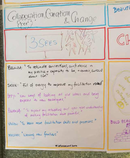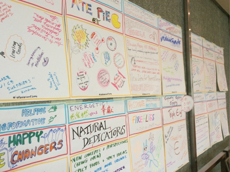 看!這是16個小組的討論分享成果,不同國家所有參會者的目標在融合一起。