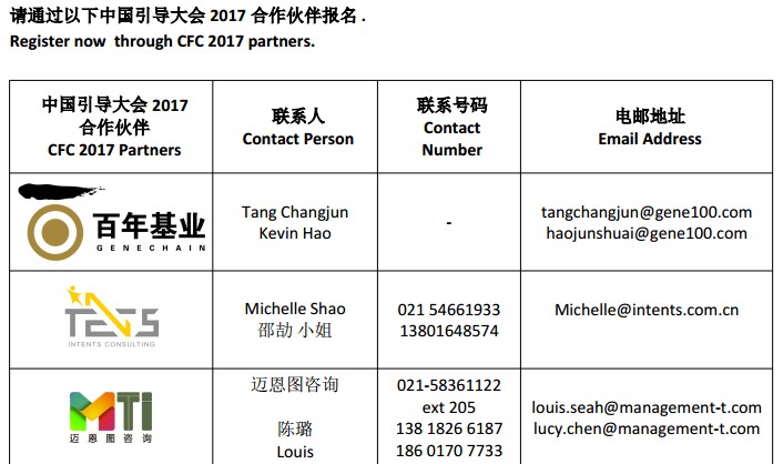 中國(guó)引導(dǎo)大會(huì)將于2017年4月28-29日在上海龍柏飯店舉辦, 您可以通過(guò)包括百年基業(yè)在內(nèi)的7家中國(guó)引導(dǎo)大會(huì)合作伙伴進(jìn)行報(bào)名。 并在3月15日之前報(bào)名,享有一定的折扣。 |