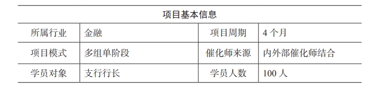 本案例中的客戶期望戰(zhàn)略性地培養(yǎng)大批能夠應對變革的優(yōu)秀管理者,以應對內外部壓力。為此他們發(fā)起了一個大型的行動學習圓桌會發(fā)展領導力項目,計劃培養(yǎng) 100 名學員,訓練主題聚焦于“如何成長為一名優(yōu)秀支行行長?”