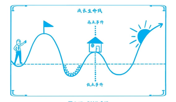 在討論中可能涉及商業(yè)機(jī)密,也可能暴露個人隱私,甚至要袒露自己的各種缺點(diǎn)和弱點(diǎn),這要求絕對安全和信任的場域。為此我們做過一輪成長生命線分享(見下圖),每個人分享自己生命成長中的高點(diǎn)、低點(diǎn)和轉(zhuǎn)折點(diǎn)的人生故事。