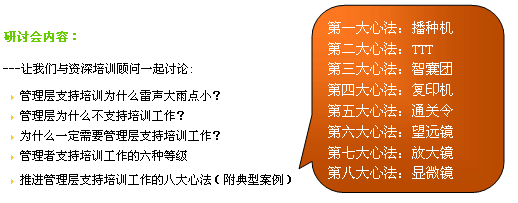 《推動(dòng)管理層支持培訓(xùn)工作的八大心法》----培訓(xùn)經(jīng)理人沙龍(四)