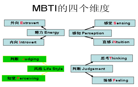 –了解性格傾向的四個(gè)構(gòu)面:怎樣與外界互動(dòng);接受信息的傾向;作決定的方式;怎樣安排自己的時(shí)間和生活。